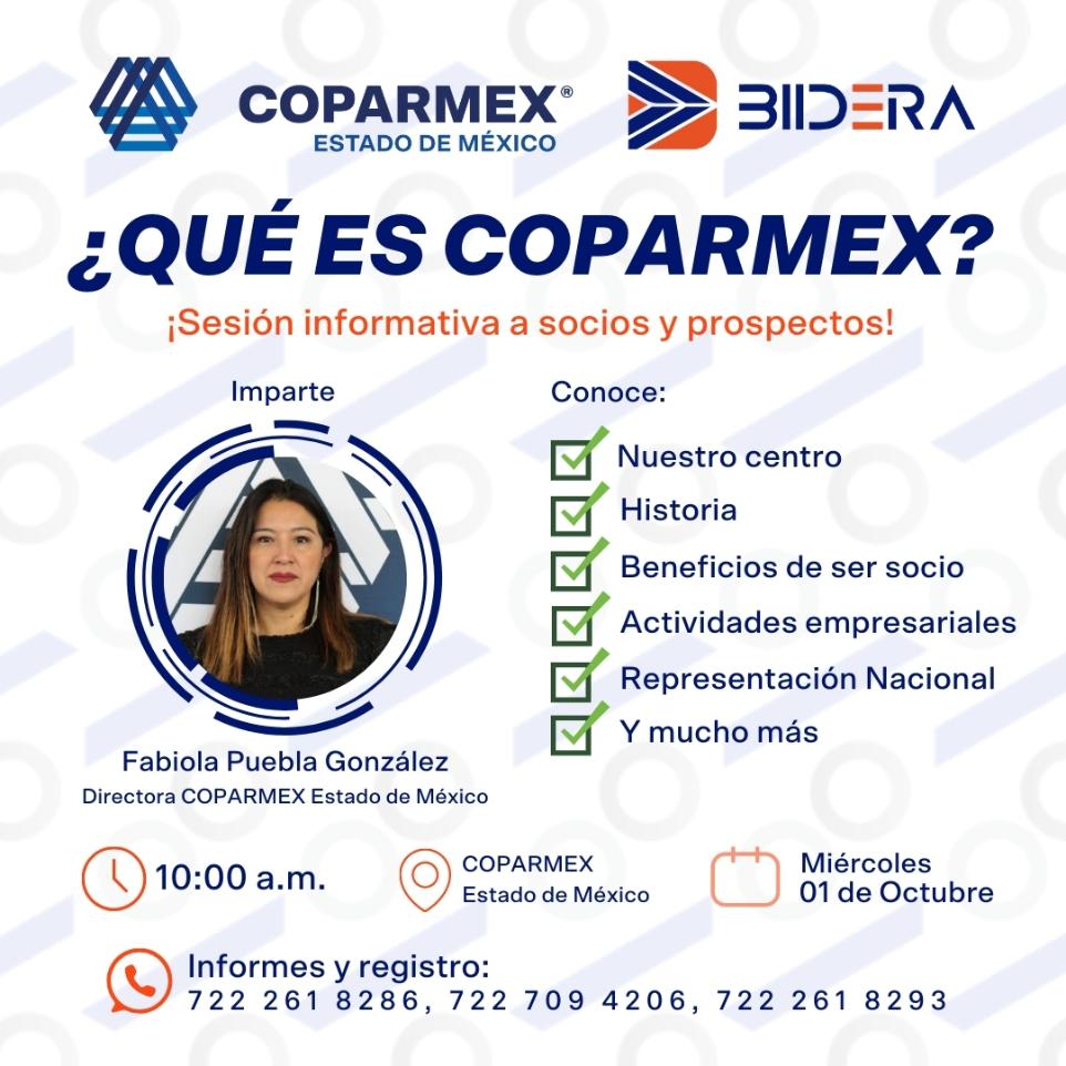 🚀 Acompáñanos a nuestra sesión informativa "¿Que es #COPARMEX?" dónde hablamos sobre: